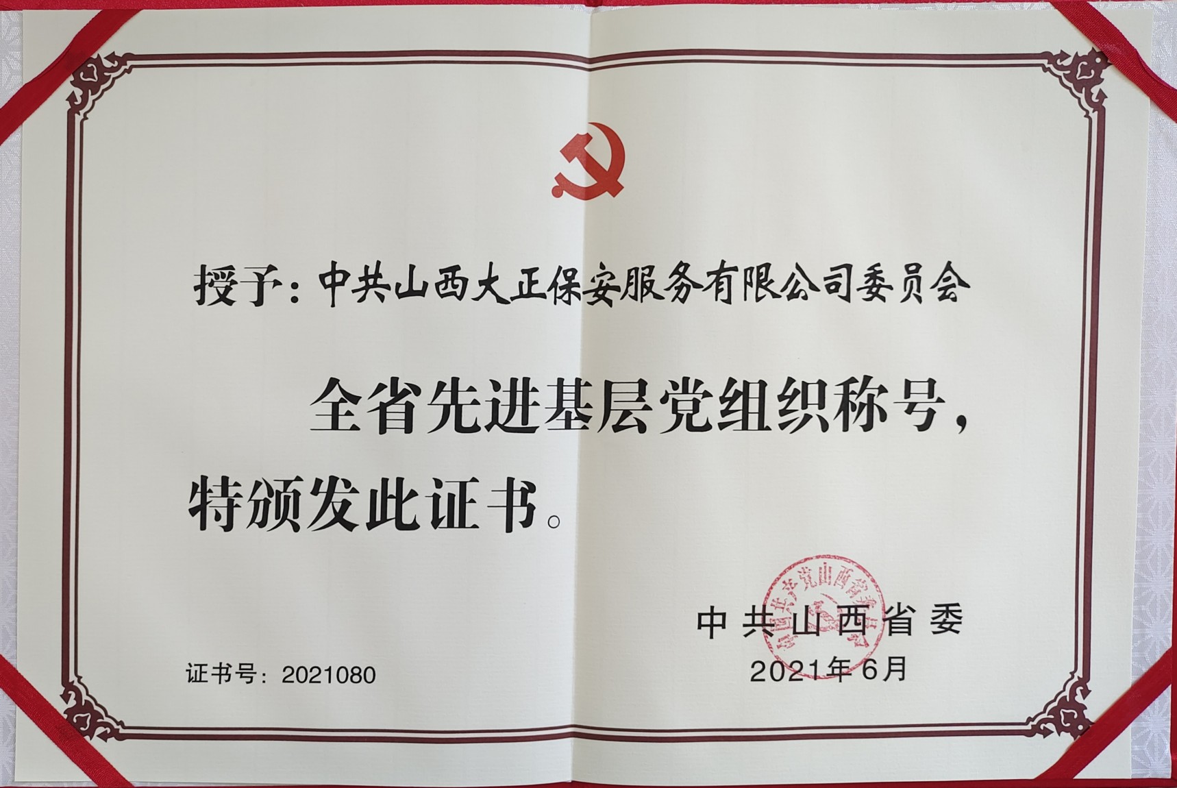 6月22日,在即將迎來中國(guó)共產(chǎn)黨百年華誕之際,山西省“兩優(yōu)一先”表彰大會(huì)在太原隆重召開。會(huì)上,中共山西大正保安服務(wù)集團(tuán)有限公司委員會(huì)被中共山西省委授予“全省先進(jìn)基層黨組織”榮譽(yù)稱號(hào)。會(huì)議以電視電話會(huì)議形式召開,集團(tuán)公司黨委副書記、副總經(jīng)理陳志平代表集團(tuán)公司黨委在忻州分會(huì)場(chǎng)參會(huì)并領(lǐng)取獎(jiǎng)牌及榮譽(yù)證書。