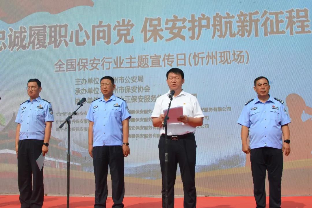 山西大正保安服務(wù)集團(tuán)有限公司黨委副書記、總經(jīng)理、市保安協(xié)會(huì)常務(wù)副會(huì)長(zhǎng)趙培宏代表忻州市保安協(xié)會(huì)向全市廣大保安員表示親切的慰問和誠摯的謝意。保安服務(wù)業(yè)是伴隨著改革開放和市場(chǎng)經(jīng)濟(jì)發(fā)展而興起的新興服務(wù)產(chǎn)業(yè)。而7月24日這個(gè)日子代表廣大保安員每周7天24小時(shí)全天候提供安全保障服務(wù)。大家夜以繼日奮戰(zhàn)在社會(huì)的各個(gè)角落、守護(hù)著萬家的燈火安寧,為這一天賦予了新的含義。他講到,近年來在市委市政府和政府職能部門的正確領(lǐng)導(dǎo)和高度重視下,我市保安服務(wù)業(yè)蓮勃發(fā)展,在服務(wù)經(jīng)濟(jì)社會(huì)發(fā)展、服務(wù)群眾、健全社會(huì)治安歷控體系和增加社會(huì)就業(yè)等方面,發(fā)揮了越來越重要的作用。