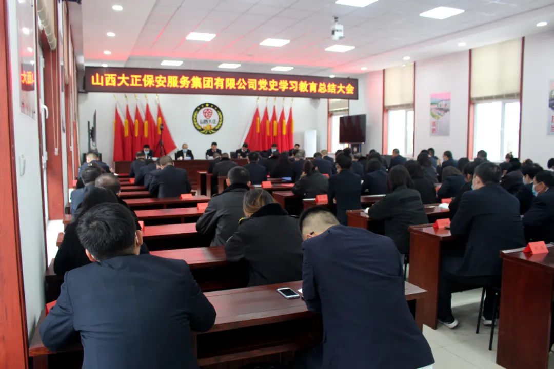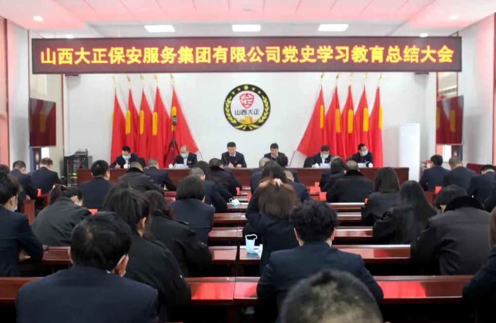 2022年1月24日上午,山西大正保安服務(wù)集團(tuán)有限公司召開黨史學(xué)習(xí)教育總結(jié)大會。會議深入貫徹落實(shí)習(xí)近平總書記重要指示精神和黨史學(xué)習(xí)教育總結(jié)會議精神,全面總結(jié)了一年來公司黨史學(xué)習(xí)教育工作開展情況,并對公司今后進(jìn)一步拓展黨史學(xué)習(xí)教育成果做出了部署,指明了方向。集團(tuán)公司黨委副書記、總經(jīng)理趙培宏主持會議并作總結(jié)講話。黨委副書記、副總經(jīng)理陳志平出席會議并作公司黨史學(xué)習(xí)教育總結(jié)報告。公司領(lǐng)導(dǎo)班子成員、各單位、各分公司負(fù)責(zé)人、機(jī)關(guān)全體職工參加大會。