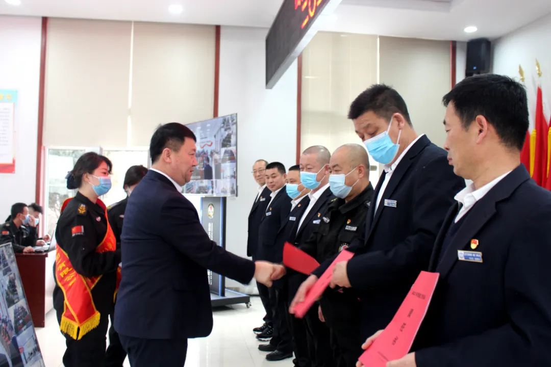 (公司黨委委員、副總經(jīng)理王明生宣讀《山西大正保安服務(wù)集團(tuán)有限公司二0ニ一年度“雙先”評(píng)比表彰決定》)
