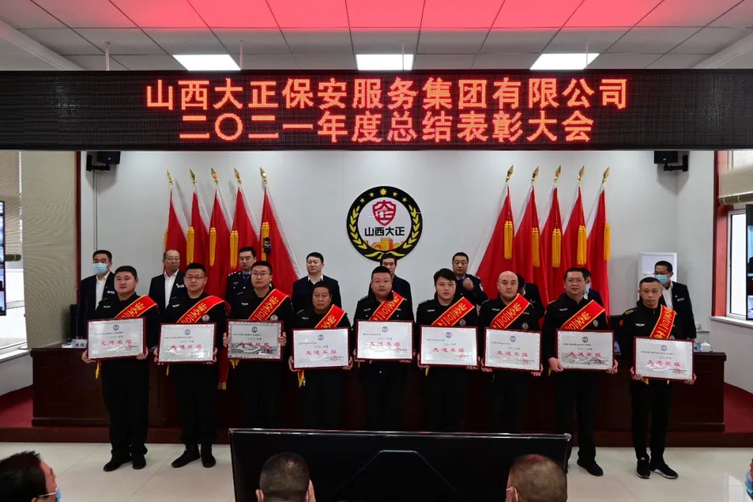 王明生宣讀《山西大正保安服務(wù)集團(tuán)有限公司二0ニ一年度“雙先”評(píng)比表彰決定》。隨后進(jìn)行了頒獎(jiǎng)儀式。對(duì)受表彰的2021年度先進(jìn)單位、先進(jìn)集體、安全標(biāo)兵團(tuán)隊(duì)、新聞報(bào)道先進(jìn)單位、先進(jìn)班(車、庫(kù))組、優(yōu)秀管理者、先進(jìn)個(gè)人頒發(fā)獎(jiǎng)牌獎(jiǎng)狀證書(shū)。