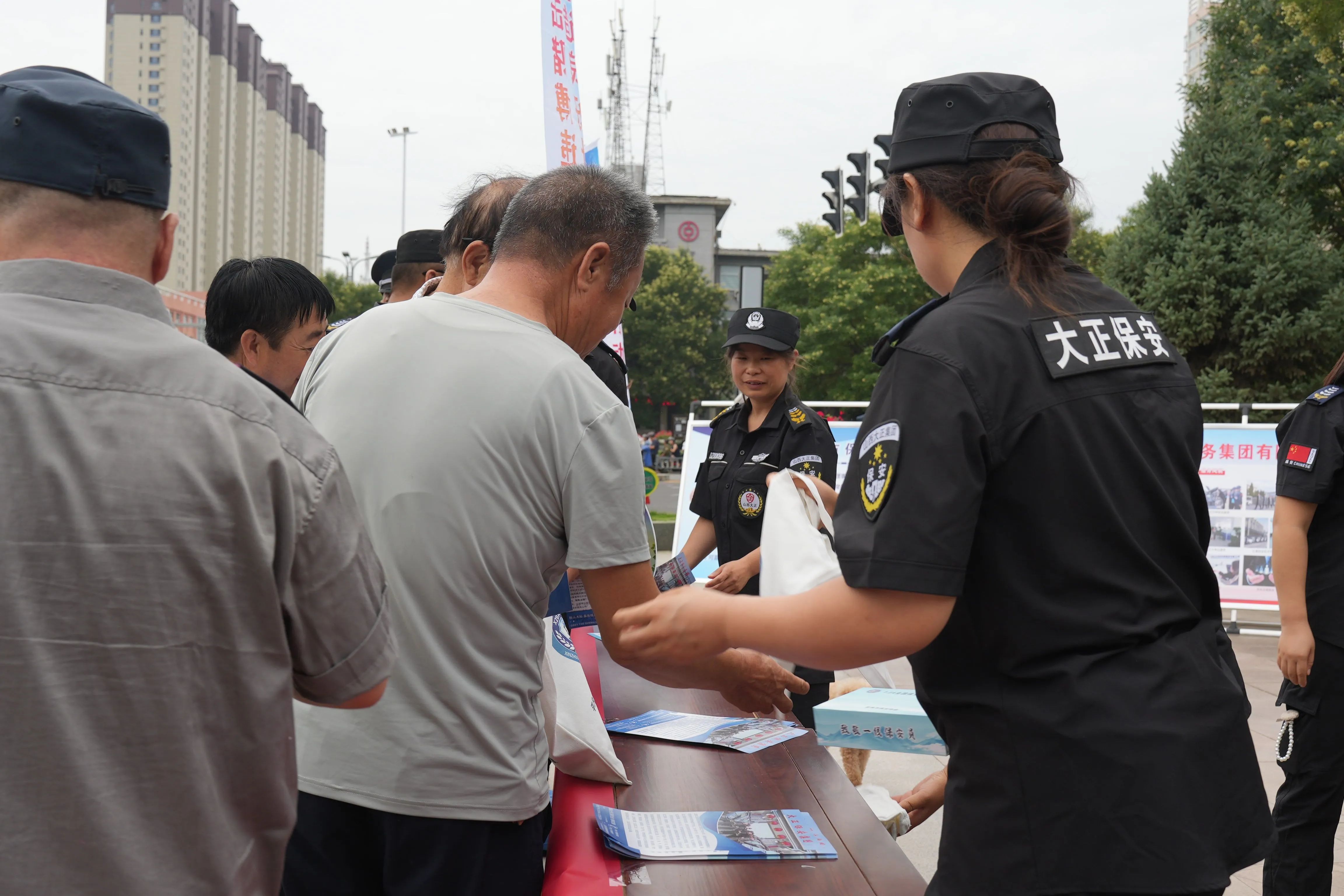 與此同時(shí),山西大正保安服務(wù)集團(tuán)有限公司也積極投身到宣傳活動(dòng)中來(lái)。精心制作了12塊宣傳展板,內(nèi)容涵蓋保安行業(yè)的職責(zé)使命、服務(wù)范圍、優(yōu)秀事跡等方面,生動(dòng)展示了保安隊(duì)伍的風(fēng)采和貢獻(xiàn)。保安隊(duì)員們更是主動(dòng)與市民互動(dòng),通過(guò)現(xiàn)場(chǎng)講解、模擬演示等方式,讓市民更加直觀地了解保安工作的重要性和必要性。