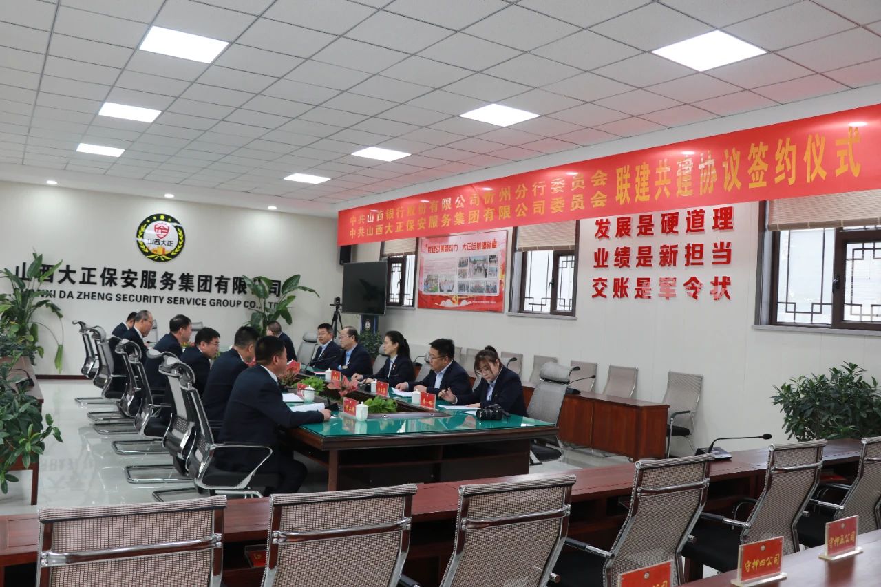 3月11日,山西銀行忻州分行與山西大正保安服務(wù)集團(tuán)黨建聯(lián)建簽約儀式在大正保安服務(wù)集團(tuán)隆重舉行。山西銀行忻州分行黨委書記、行長宋波,山西大正保安服務(wù)集團(tuán)黨委書記、董事長趙培宏出席活動并致辭,共同表達(dá)了對黨建聯(lián)建工作的高度重視和對合作前景的期待。同時,分別代表雙方簽署黨建聯(lián)建共建協(xié)議。雙方領(lǐng)導(dǎo)班子成員與相關(guān)部門負(fù)責(zé)人參加活動。