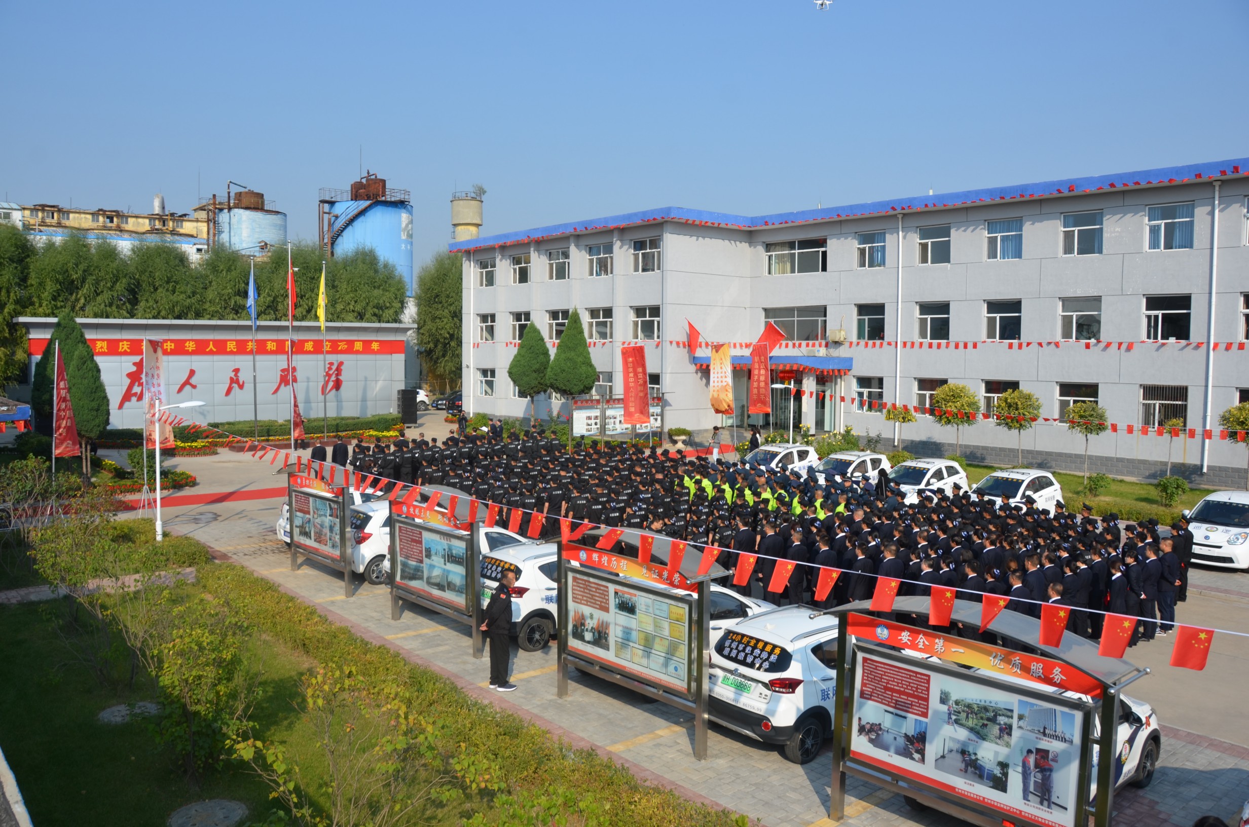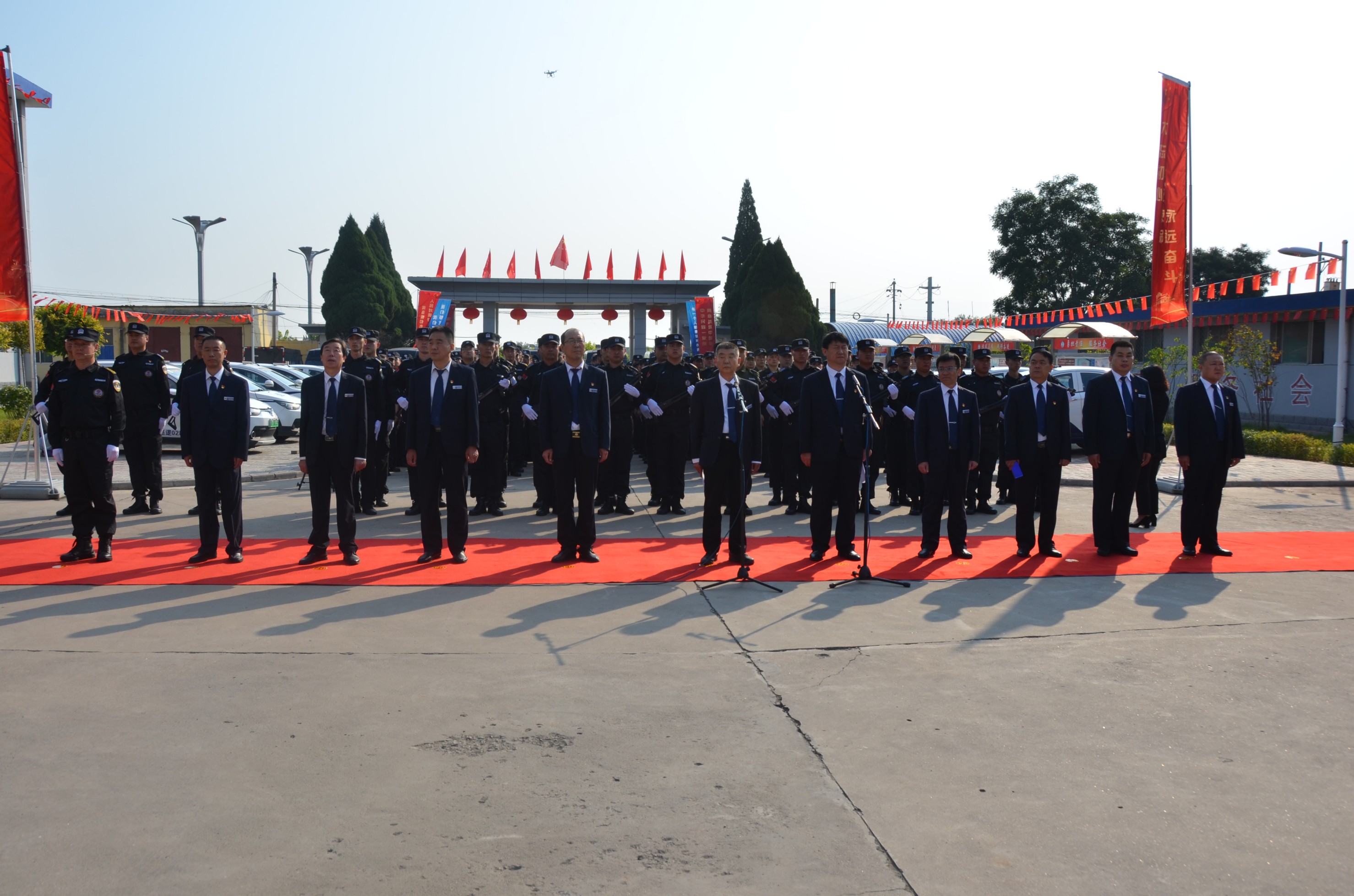 在中華人民共和國成立70周年即將來臨之際,為進一步提高廣大干部職工的愛國意識,營造濃厚的愛國愛企氛圍,激發(fā)正能量、提升凝聚力。9月27日,山西大正保安服務有限公司在公司城南駐地隆重舉行莊嚴的升旗儀式。黨委書記、董事長張躍生作重要講話,公司黨委委員、副總經(jīng)理趙培宏主持升旗儀式。王明生、邢春生、張瑞東、呂雙明等公司領導、機關各單位及基層九個分公司的400余名干部職工參加儀式。