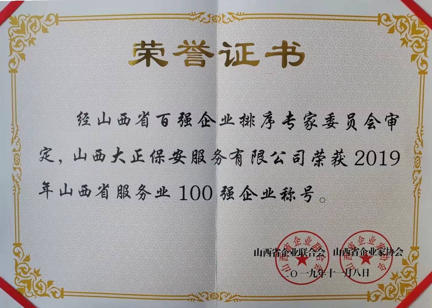 11月8日,2019山西企業(yè)100強在省城太原發(fā)布。經山西省百強企業(yè)排序專家委員會審定,山西大正保安服務有限公司再次榮獲“山西省服務業(yè)100強企業(yè)”,這是該公司自2014年以來連續(xù)五次榮登該榜。公司黨委副書記、副總經理陳志平前往參會。