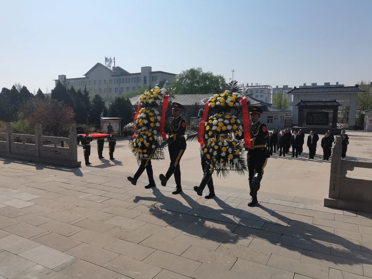 烈士陵園內(nèi)松柏蒼翠,烈士紀(jì)念塔巍然矗立,現(xiàn)場(chǎng)莊嚴(yán)肅穆。上午9時(shí)整,儀式開(kāi)始,全場(chǎng)齊聲高唱中華人民共和國(guó)國(guó)歌。國(guó)歌唱畢,全場(chǎng)肅立,向烈士默哀。隨后,4名禮兵抬起花籃,正步向前,拾級(jí)而上,將花籃整齊擺放在烈士紀(jì)念塔前,彭原峰同志、趙培宏同志緩步上前,認(rèn)真整理緞帶。花籃的紅色緞帶上“革命烈士永垂不朽”金色大字熠熠生輝,寄托著對(duì)英烈的無(wú)限哀思和崇高敬意。之后,全體黨員重溫入黨誓詞,聲音響徹整個(gè)陵園。每一位宣誓的黨員都重新感受入黨時(shí)那神圣的一刻,心中感慨萬(wàn)分,深切地感受到作為一名共產(chǎn)黨員的自豪與責(zé)任。最后,全體黨員有序參觀革命烈士紀(jì)念墻及紀(jì)念館,通過(guò)一張張老照片、一件件陳列展品回顧烈士們的英雄壯舉,追憶革命先輩艱苦卓絕的奮斗歷程。