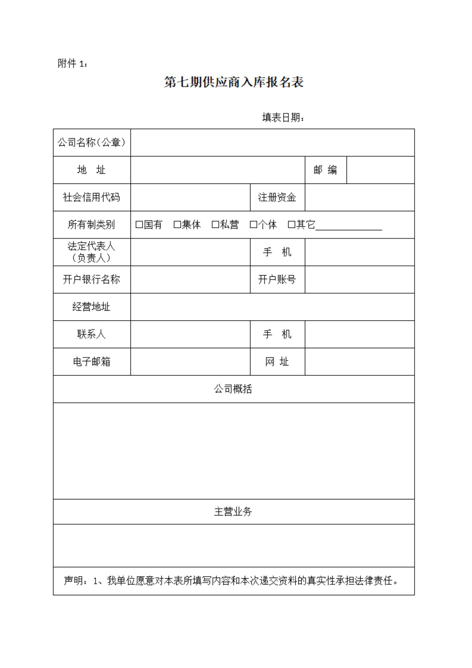 1、供應(yīng)商入庫(kù)報(bào)名表(見(jiàn)附件);