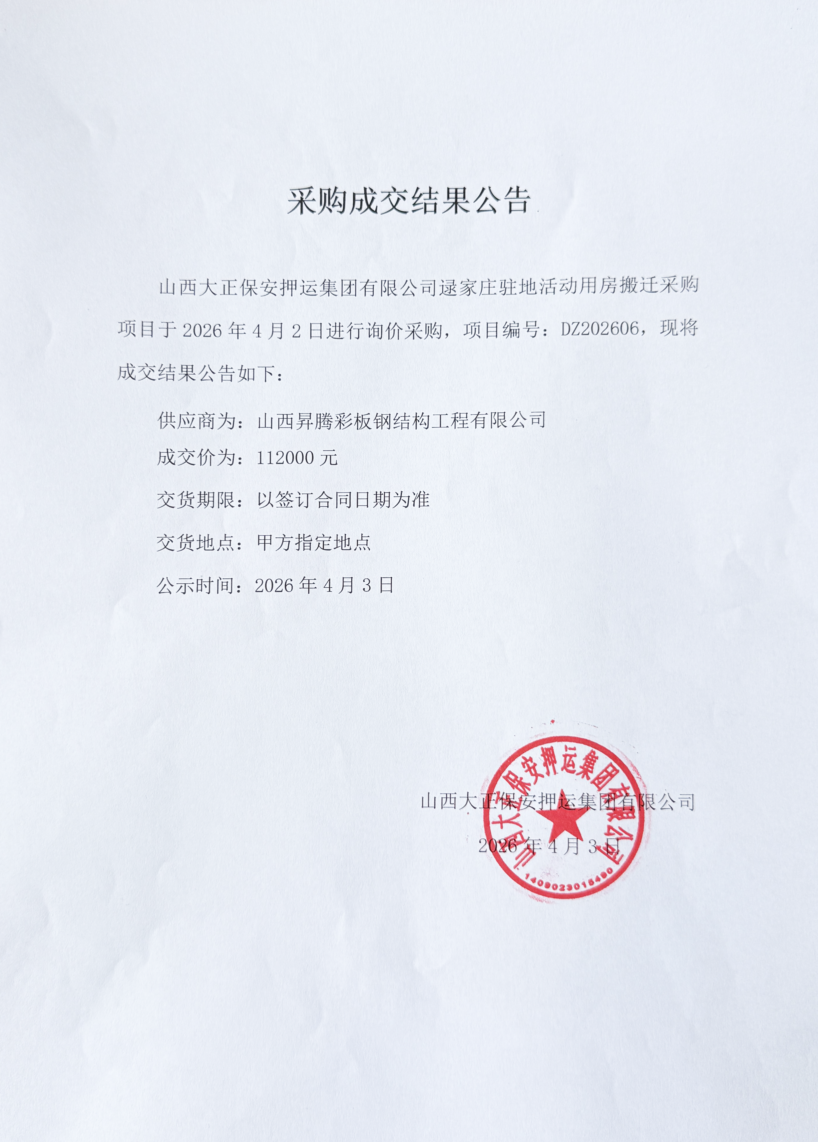 成交結(jié)果公示