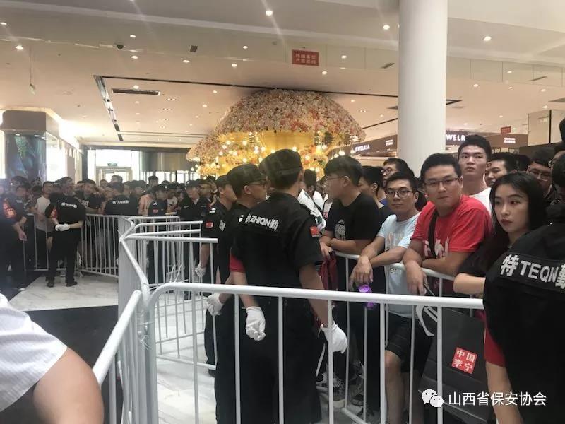 2018年7月15日,美國(guó)NBA著名球星德維恩-韋德“2018年中國(guó)行”品牌代言簽售會(huì)第三站在省會(huì)太原茂業(yè)天地隆重舉行,由于韋德作為籃球明星偶像,在中國(guó)知名度、關(guān)注度、影響力較高,深受青少年球迷的喜愛,粉絲眾多,加之活動(dòng)現(xiàn)場(chǎng)又在人員密集的商場(chǎng)內(nèi)舉辦,不確定因素增猛,安保難度加劇,為確;顒(dòng)安全順利進(jìn)行,按照太原市公安局的安排部署,太原保安服務(wù)有限公司抽調(diào)300余名保安員承接了此次安保任務(wù)。