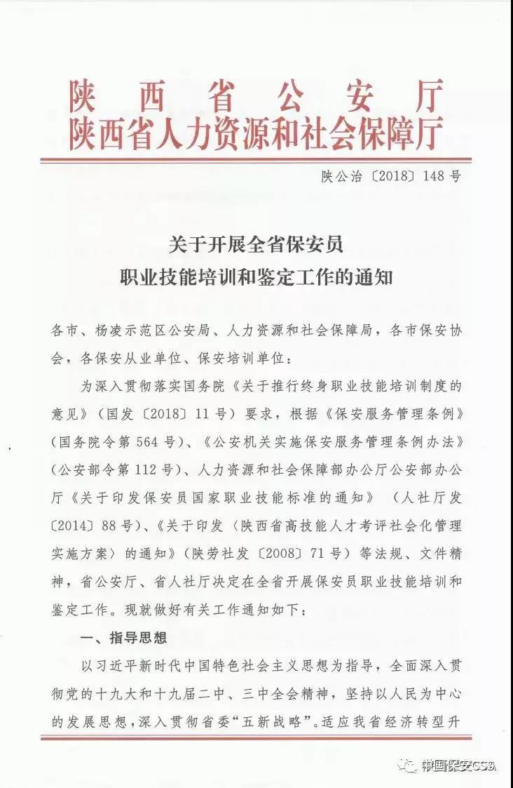 陜西省出臺《關(guān)于開展全省保安員職業(yè)技能培訓(xùn)和鑒定工作的通知》