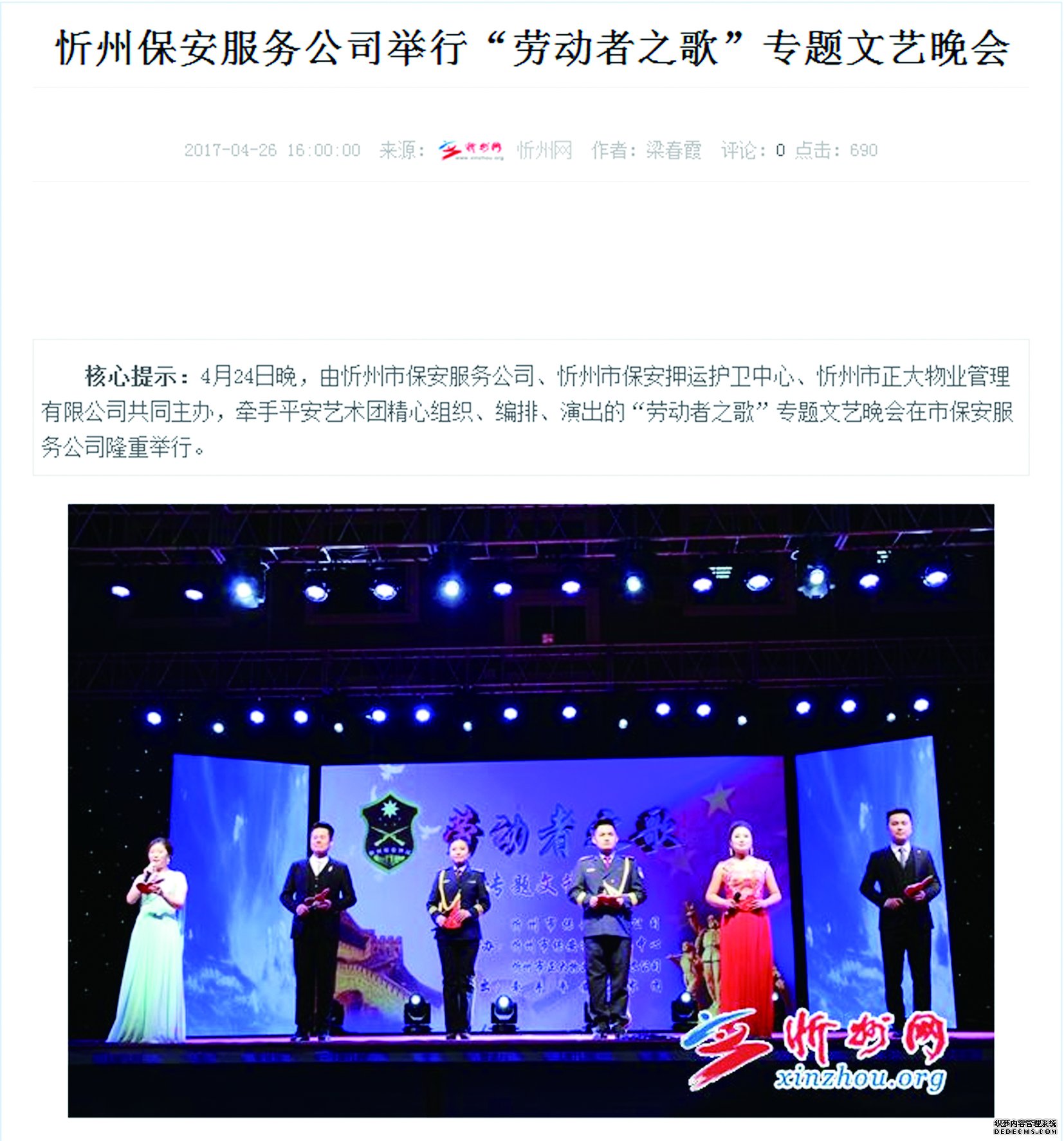值“五一”國際勞動(dòng)節(jié)、“五四”青年節(jié)來臨之際,我公司成功舉辦“慶五一·迎五四”系列文體活動(dòng)。在公司西區(qū)大院舉行“勞動(dòng)者之歌”專題文藝晚會(huì)。舉辦這次活動(dòng)為進(jìn)一步豐富員工文化生活、促進(jìn)溝通交流、增強(qiáng)團(tuán)隊(duì)凝聚力,提高廣大員工的歸屬感和主人翁意識(shí),打造和諧共贏的企業(yè)文化,樹立企業(yè)良好的社會(huì)形象。向長(zhǎng)期以來關(guān)心、支持公司事業(yè)發(fā)展的社會(huì)各界人士表示衷心的感謝。節(jié)目?jī)?nèi)容包括舞蹈、配樂詩朗誦、制式服裝秀、歌曲、小品、曲藝、戲曲等。異彩紛呈的節(jié)目博得觀眾陣陣掌聲,吸引了眾多市民駐足欣賞。