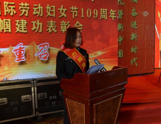 市總工會(huì)黨組成員、經(jīng)審委主任崔曉君和市婦聯(lián)黨組成員、副主席郭梅榮分別講話,她們向公司婦女同胞致以節(jié)日的祝福和親切的問候,對(duì)公司一年來女工工作給予充分的肯定,向受到表彰的先進(jìn)集體和先進(jìn)個(gè)人表示祝賀。希望公司婦女同胞要愛崗敬業(yè)、爭創(chuàng)一流、奮發(fā)有為,與公司同成長、共進(jìn)步。同時(shí)要愛護(hù)身體,經(jīng)營好家庭、教育好子女,孝敬好父母,在干事創(chuàng)業(yè)中書寫精彩人生,在崗位建功中彰顯巾幗風(fēng)采。