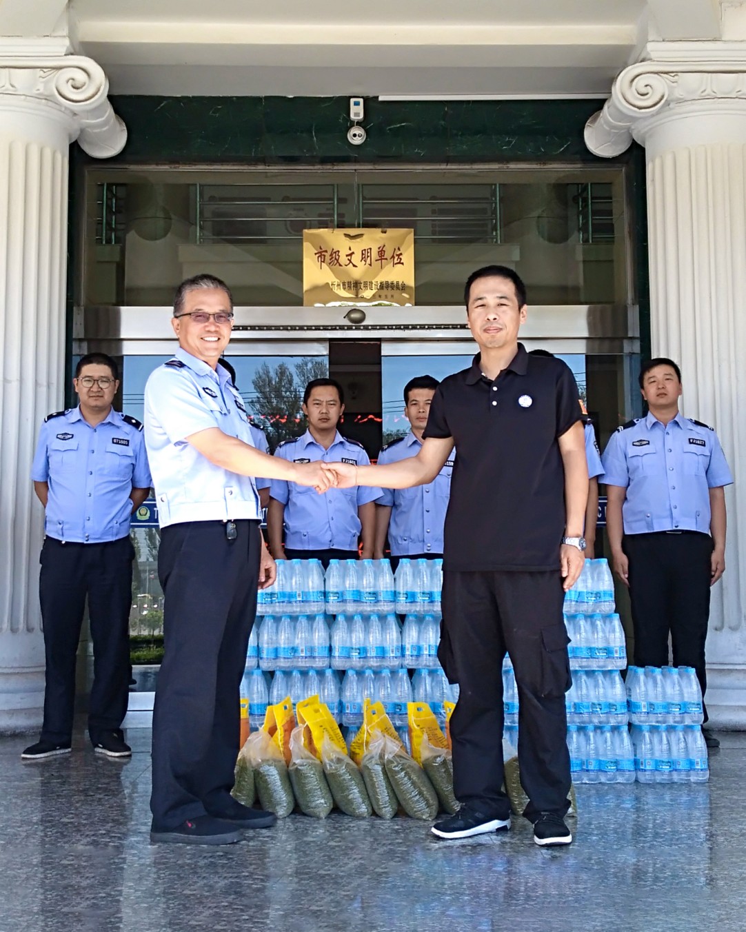 近日,根據(jù)公司統(tǒng)一安排,裝備保障服務(wù)中心牽頭,組織守押公司各基層中隊(duì),前往忻州市區(qū)及各縣市一線交警單位,為烈日下執(zhí)勤的交警一線民警送去降溫解暑的礦泉水、綠豆、小米等慰問物資。