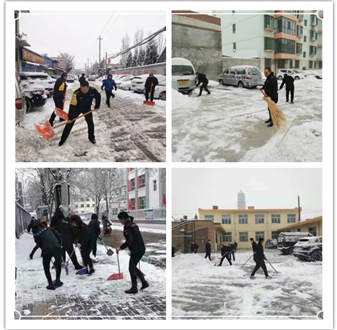 本次活動(dòng),利用1月6日—7日兩天時(shí)間,我公司組織全體員工清掃了位于開(kāi)發(fā)區(qū)、七一南路、逯家莊、氣象北巷、通崗路等處城區(qū)駐地以及分布各縣的基層駐地的院內(nèi)積雪。我公司派駐各單位的保安、物業(yè)基層單位也積極行動(dòng),與服務(wù)單位的同志們一起清掃積雪,有力的保障了服務(wù)單位業(yè)務(wù)正常運(yùn)行。同時(shí),進(jìn)一步延伸清掃范圍,將九原東街北同蒲鐵路線附近,利民西街北九巷附近,七一路小學(xué)及十一中兩所學(xué)校附近等處路面的積雪進(jìn)行徹底清掃,為附近群眾出行提供了便利。