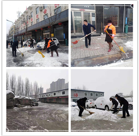 物業(yè)、刻章、文化藝術(shù)等分公司及監(jiān)控中心在組織員工清掃辦公區(qū)域和周邊道路積雪中,專門(mén)將清掃范圍擴(kuò)大,有力保障了道路暢通,為附近居民、七一路小學(xué)及十一中學(xué)生出行提供安全。
